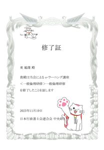日本行政書士会中央研修所主催の一般倫理研修を受講しました。eラーニングで3時間じっくりと学習しました。 一般倫理研修は、昨年度に発覚した行政書士による職務上請求書の不正使用事件を受け、2023年8月31日より会員全員に一 […]